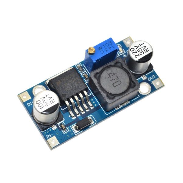 Понижуючий конвертер постійного струму побудований на базі LM2596S, діапазон напруг на вході 4.5 - 40В, на виході 3 - 35В (обов'язкова умова: вхідна напруга має бути не менше ніж на 1.5В вище ніж вихідна).