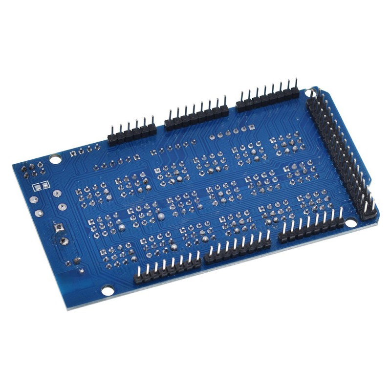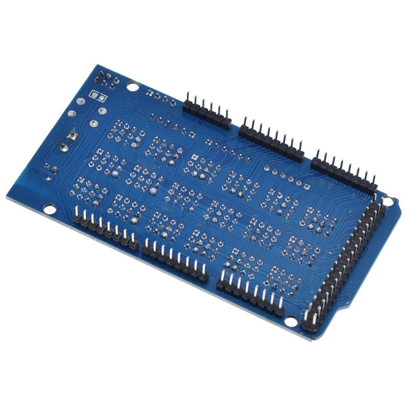 Ардуіно Мега Сенсор Шилд дозволяє підключати до Arduino Mega 2560 різні модулі, такі як датчики, сервоприводи, реле, кнопки, потенціометри та ін., Що дозволить вам реалізувати проекти будь-якої складності, що вимагають одночасного підключення декількох модулів до контролера Arduino. Використовується сенсор-шилд наступним чином: спочатку до нього підключаються за допомогою стандартних інтерфейсів необхідні модулі, потім Шилд "одягається" на контролер Ардуіно і вже після можна подавати живлення. Керується плата розширення Arduino Mega Sensor за допомогою контролера до якого вона підключена. Сам сенсор шилд має кнопку скидання, якою можна "ребутнути" шилд в разі виникнення проблем. На шилді є світлодіод, що сигналізує про подачу на нього напруги. Спеціальними джамперами IIC - COM користувач має можливість перемикатися між однойменними інтерфейсами плати. Sensor Shield має масу інтерфейсів, серед яких 6 аналогових входів, аналогові IO порти, аналогові Buckled порти, входи-виходи RS232, I2C порт, а також цифрові IO порти. В зв'язку з різними навантаженнями, які можуть бути підключені до плати, дуже важливою умовою є забезпечення стабільного живлення шилда 5В. Характеристики: