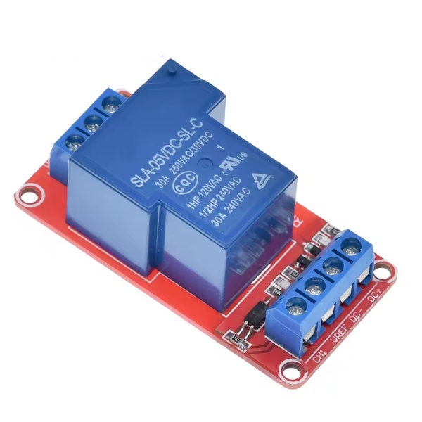 Модуль 1-канального реле 5 В, вимагає 15-20 мА для спрацьовування, тобто може управлятися безпосередньо з виводів мікроконтролера Arduino або подібних. Вмикається логічним нулем, вимикається логічною одиницею.