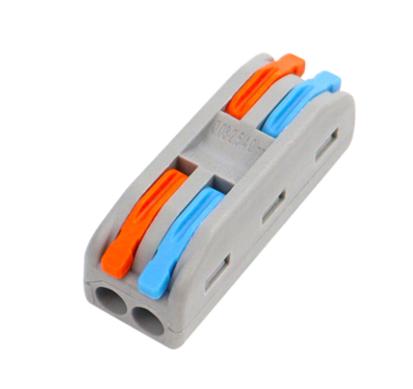 Сполучна клема PCT-212, 2-контактна (аналог WAGO) c затискачем призначена для підключення багатожильних провідників перетином від 0,08 мм2 до 4 мм2, одножильних до 2.5 мм2.