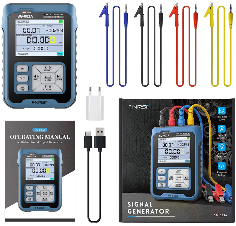 Генератор сигналів FNIRSI SG-003A - це компактний одноканальний цифровий генератор сигналів у захисному силіконовому чохлі. Прилад видає сигнали за напругою та струмом, імітуючи сигнали з датчиків і сигнали керуючих систем, сигнали ШІМ. Даний генератор сигналів призначений для налагодження промислових ПЛК, технологічного обладнання, електричних клапанів тощо.