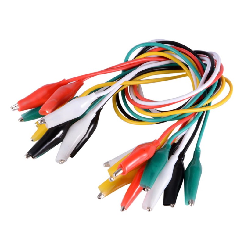 Набір різноколірних кабелів з 10шт із затисками Крокодил-Крокодил 35мм. Довжина 0.4м, макс струм 1a. Максимальна робоча температура 80ºС.
