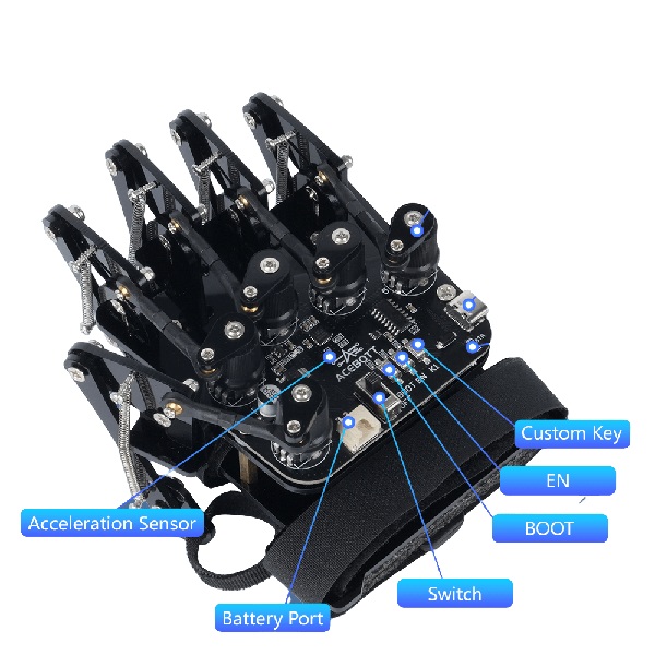 Відгуки покупців про Перчатка дистанционного управления ACEBOTT QD023 с 5 энкодерами, акселерометром и усовершенствованным контроллером ESP32 для управления роботом