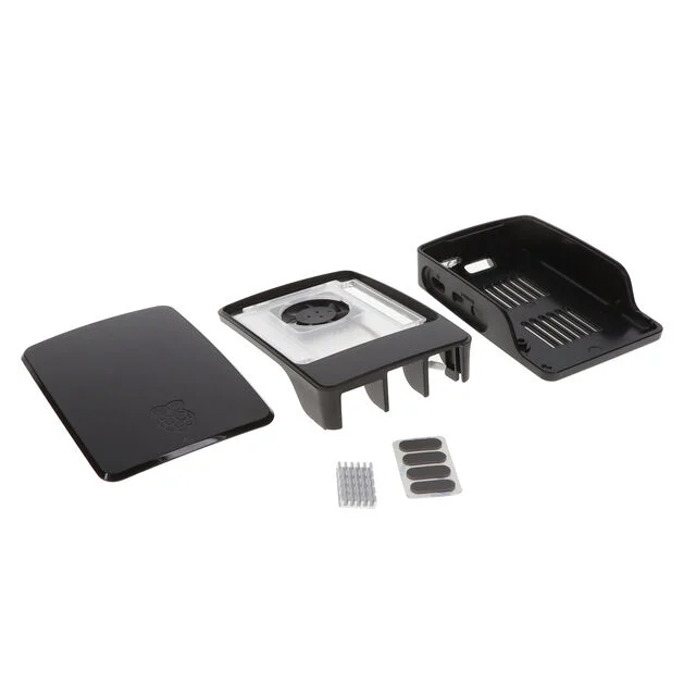 Корпус Raspberry Pi 5 виконаний з ABS з вирізами для двох портів HDMI, USB портів, Ethernet порта, а також роз'єм живлення USB-C та доступу до картки пам'яті microSD. Світлодіодний індикатор стану добре видно через гумовий відбивач. Додаткову кришку із затискачем можна зняти, щоб отримати доступ до контактів GPIO Raspberry Pi або підключити HAT. Корпус є вдосконаленим варіантом корпусу Raspberry Pi 4, з покращеними тепловими характеристиками для підтримки вищого пікового енергоспоживання Raspberry Pi 5. У нього вбудований вентилятор із регульованою швидкістю обертання, який керується за допомогою спеціального роз'єму на друкованій платі Raspberry Pi 5.