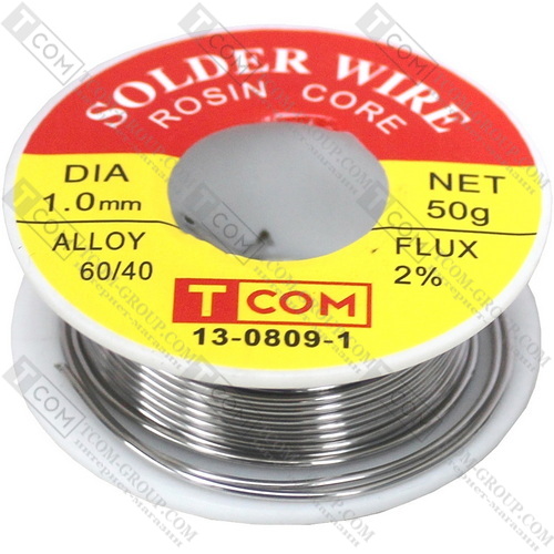 Припій олов'яно-свинцевий ПОС-60 TCOM 1мм з беззмивним флюсом, призначений для з'єднання деталей за допомогою паяння.