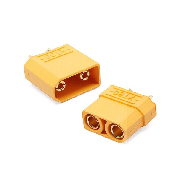 Силовой разъем XT90 – один из самых часто применяемых в моделизме силовых разъемов. В комплекте идет одна пара разъемов – папа и мама. Как правило мама идет на батарею, а папа на нагрузку (ESC и пр.) Разъемы изготовлены из высокотемпературного нейлона с позолоченными пружинными контактами. ХT90 гарантирует прочное высокоамперное соединение для токов до 90A.