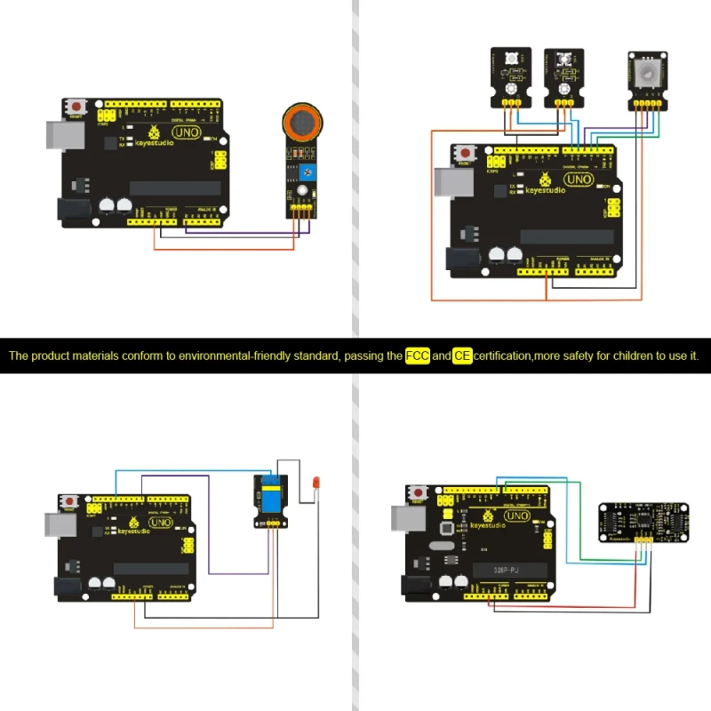 Примеры кодов для этого набора датчиков основаны на языке С, потому что он с открытым исходным кодом и прост. И если у Вас это хорошо получается, Вы также можете применить этот комплект для других платформ разработки MCU, таких как 8051, STM32, Raspberry Pi. Принцип работы у них почти такой же как и у Arduino. Набор поставляется в красивом пластиковом органайзере с описанием датчиков, экспериментов с ними.