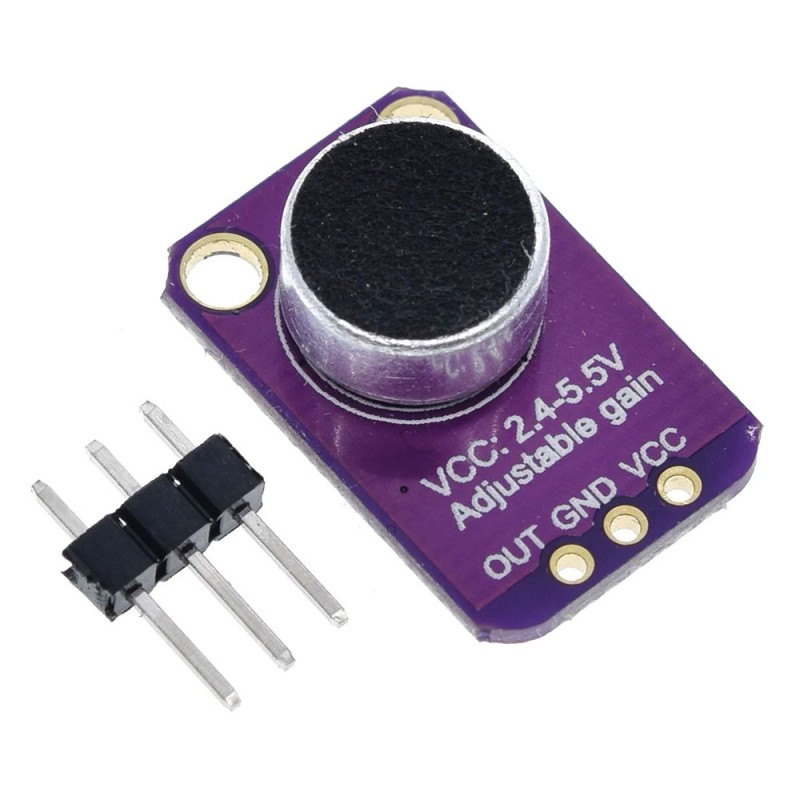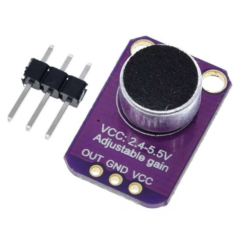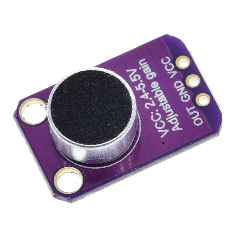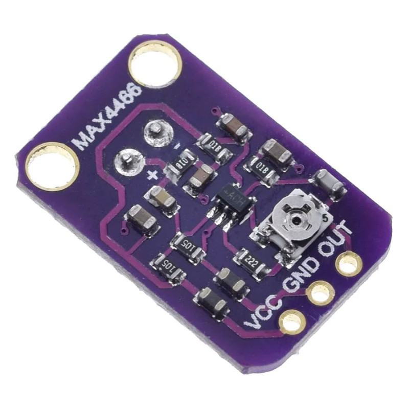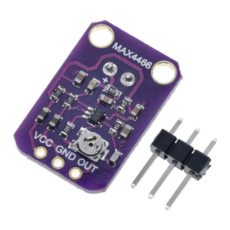 Микрофонный модуль - датчик звука со встроенным микрофонным усилителем MAX4466. На плате установлен подстроечный резистор для регулировки коэффициента усиления. Микрофонный модуль MAX4466 применяется в различных мультимедийный девайсах (звукозапись, цветомузыка, сигнализация, роботехника, а также в системах "умный дом".