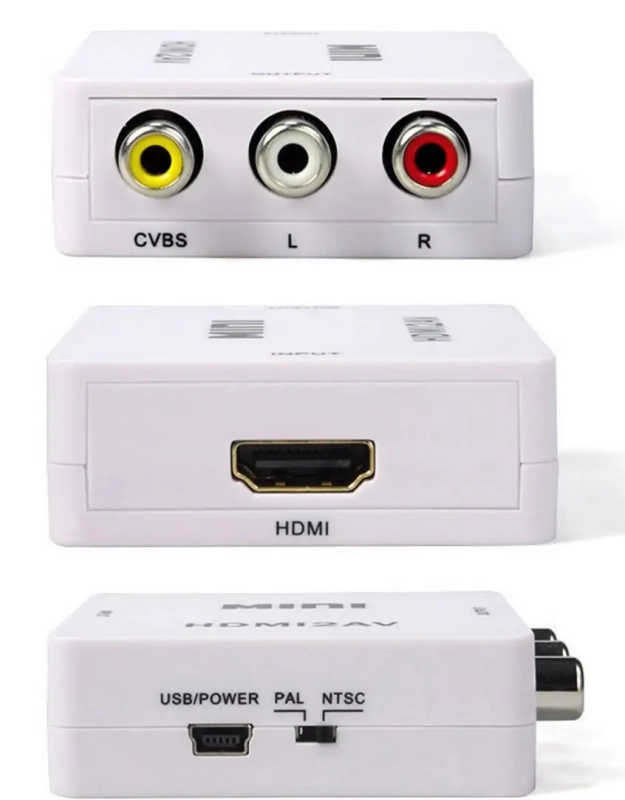Конвертер HDMI to AV преобразует сигналы HDMI интерфейса в сигналы композитного видеосигнала RCA (AV, composite CVBS) , что позволяет просматривать видео на устройствах без портов HDMI.