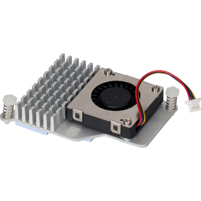 Алюминиевый активный радиатор для Raspberry Pi 5 c охлаждающим вентилятором, термопрокладками и пружинным креплением от Raspberry Pi Raspberry Pi Foundation.