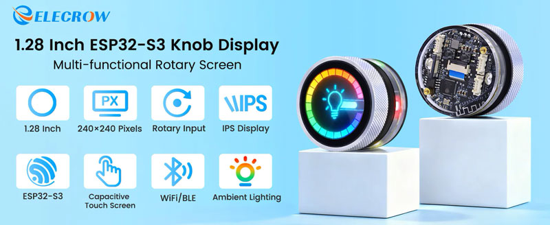 1.28" круглый сенсорный дисплей CrowPanel 240*240 IPS с ESP32-S3 и поворотной ручкой от Elecrow