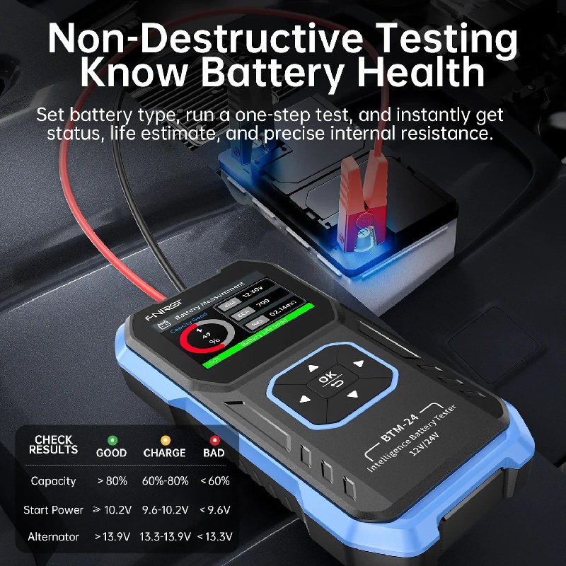 Многофункциональный автомобильный тестер аккумуляторов FNIRSI® BTM-24 2000A CCA 12В/24В
