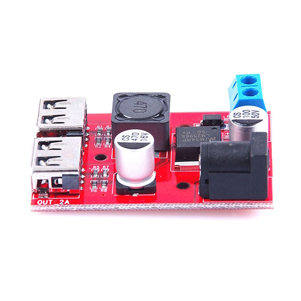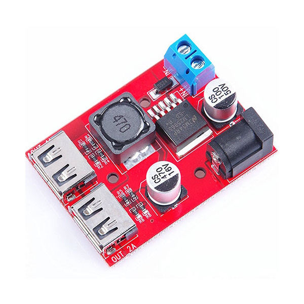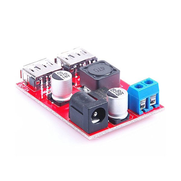 Понижающий преобразователь напряжения с 6-40В до 5В на LM2596S с двумя USB разъёмами и максимальным выходным током до 3А. Высокое качество компонентов и монтажа позволило достигнуть максимального выходного тока при очень малых размерах преобразователя. Преобразователь подходит для использования от бортовой сети автомобиля 12В или 24В.