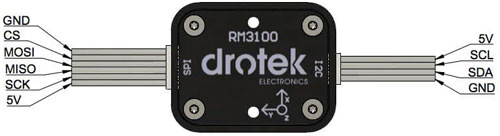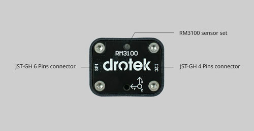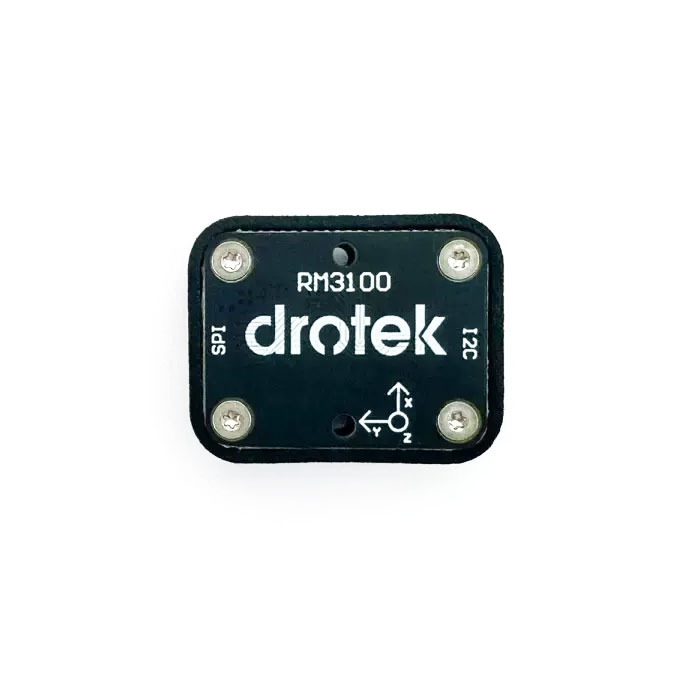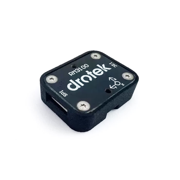 DROTEK RM3100 — это высокоточный магнитометр, применяемый в беспилотных летательных аппаратах для определения направления, аналогично электронному компасу. Устройство фиксирует магнитное поле Земли и помогает системе управления дрона корректно определять ориентацию в пространстве.