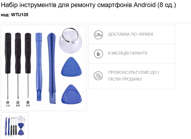 В НАБОРІ ІНСТРУМЕНТІВ ДЛЯ РЕМОНТУ СМАРТФОНІВ АНДРОЇД (8 ОДИНИЦЬ) ВІДСУТНЯ 1 (ОДНА) ПЗИЦІЯ - КОСИЙ СКРЕБОК. НАБІР - КОД - WTU135. ЗАМОВЛЕННЯ № 609995. ОТРИМАНО 28-03-2026. ПРОШУ ДОДАТИ ДО НАБОРУ ВІДСУТНЮ ПОЗИЦІЮ..