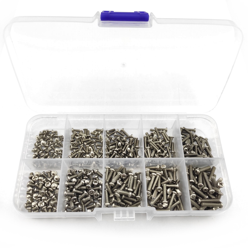 Этот универсальный набор крепежных изделий включает 10 самых популярных размеров винтов с полукруглой головкой и крестообразным шлицем. Он разработан специально для ремонта электроники, ноутбуков, мелкой бытовой техники, моделирования и хобби. Изготовлены из высококачественной стали (нержавеющей или с никелированным покрытием), что обеспечивает долговечность и отличную стойкость к коррозии. Поставляется в удобном пластиковом кейсе на 10 секций для четкой сортировки и быстрого доступа к нужному размеру.