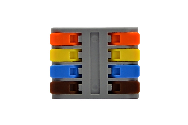 Миниатюрная проходная универсальная соединительная клемма серии DF-2-XM/2-4A для безвинтового удобного и оперативного соединения проводников.