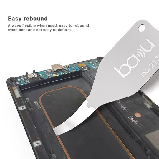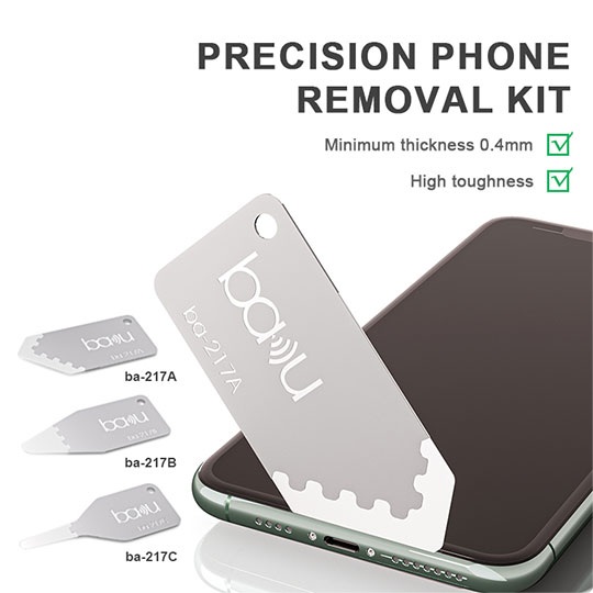 Он включает в себя 3 различных варианта формы лезвий, позволяющих разбирать различные компоненты без повреждения деталей. В то же время, BA-217 имеет уникальную многослойную конструкцию, которая значительно повышает его структурную прочность, сохраняя при этом ультратонкость и гибкость инструмента.