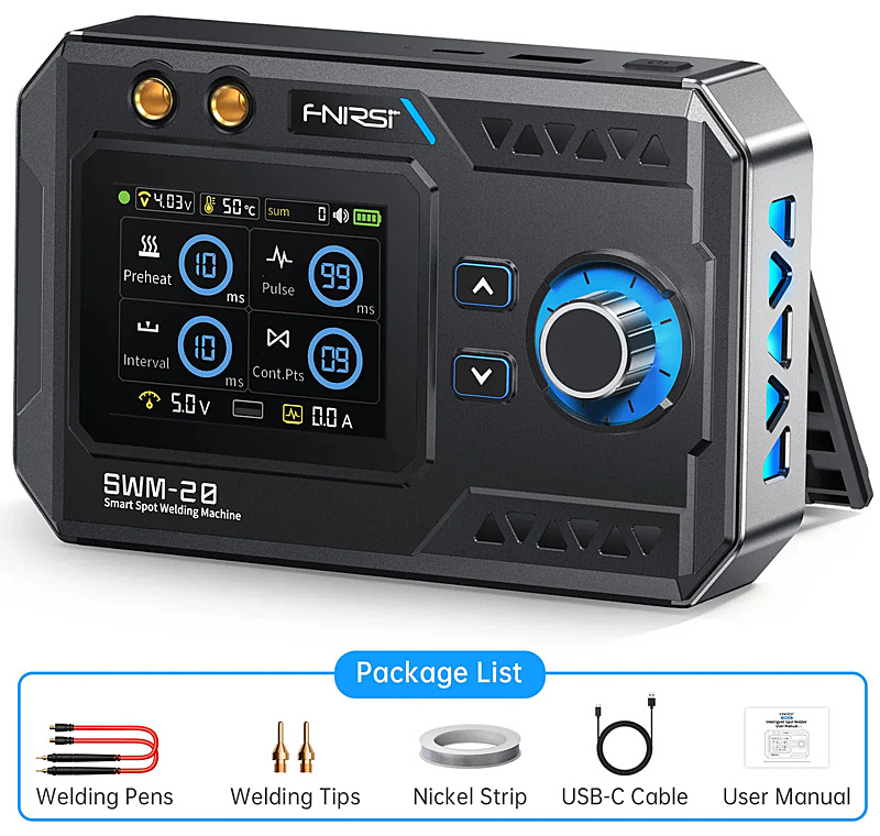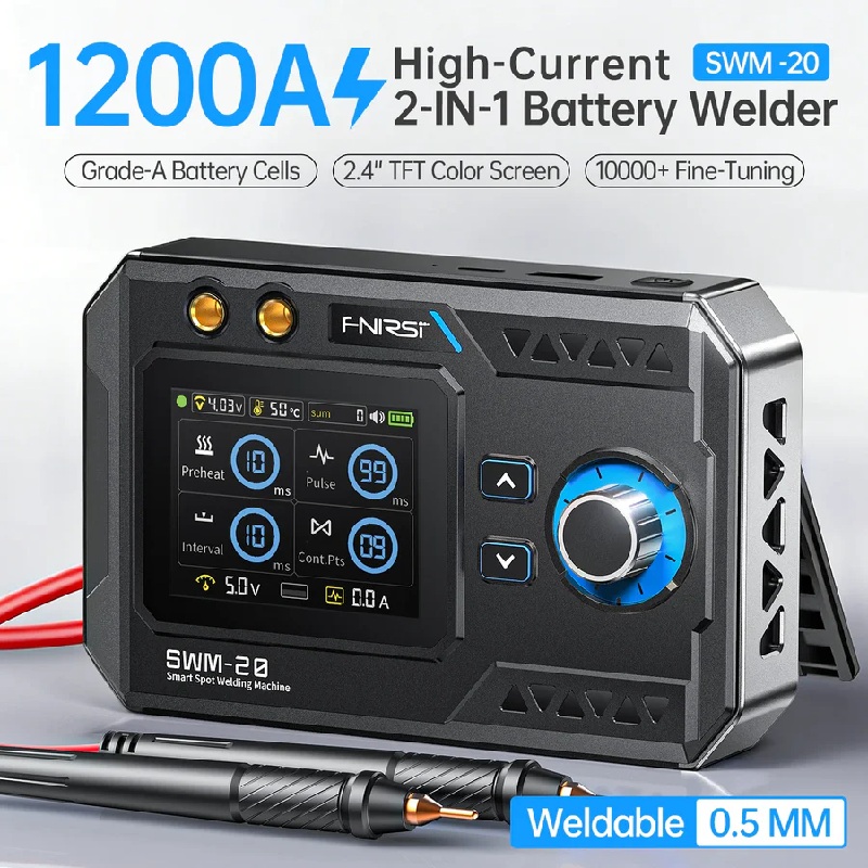 Портативный аккумуляторный сварочный аппарат FNIRSI® SWM-20 1200A с двойным импульсом, работающий в режиме 2-в-1