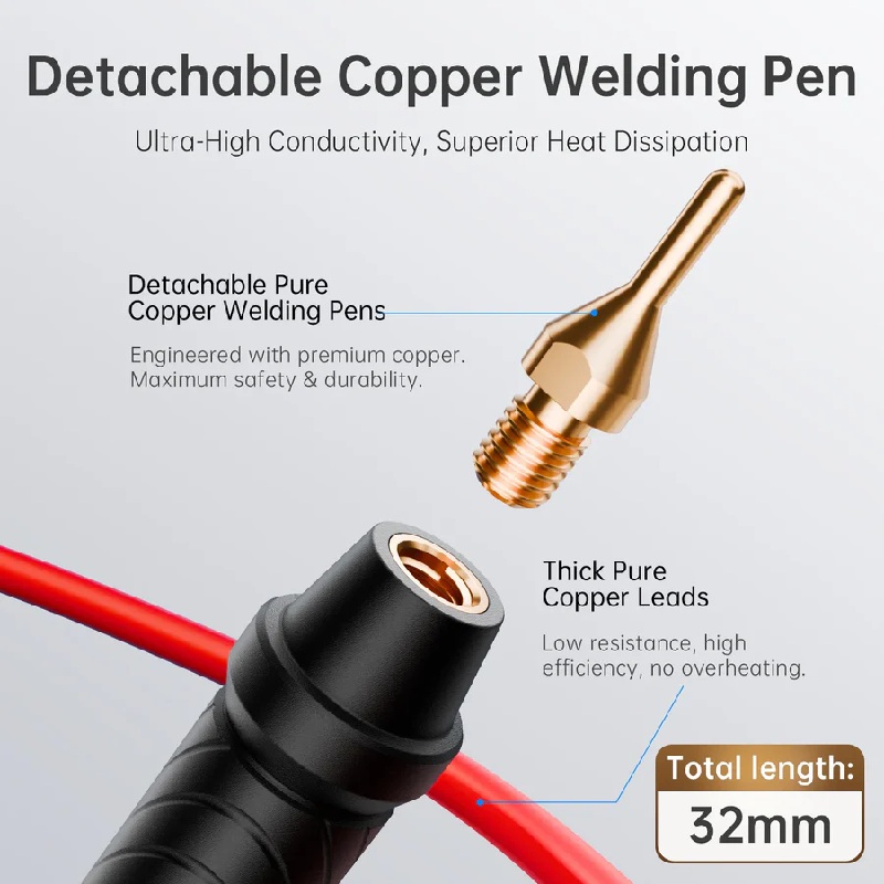 Съёмные сварочные карандаши из чистой меди: используются наконечники из 99.9% меди для высокой проводимости, долговечности и теплоотвода.
