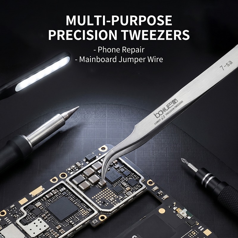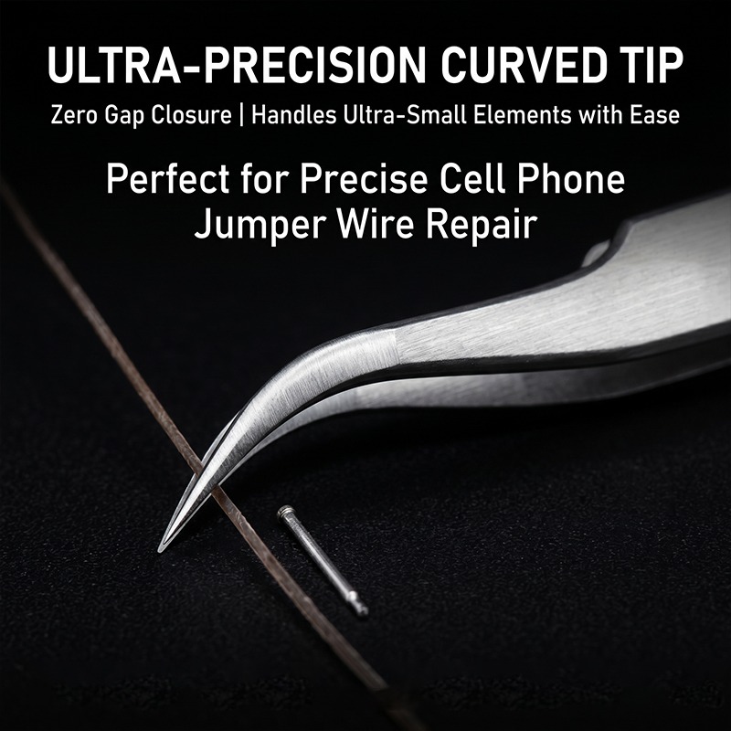 Этот пинцет изготовлен из высококачественной нержавеющей стали, а его поверхность специально обработана для обеспечения высокой силы зажима. Он позволяет добиться стабильного и точного контроля при зажимании мельчайших компонентов, регулировке положения деталей, разборке и сборке чувствительных компонентов. Пинцет широко используется в различных областях электронного производства и технического обслуживания, таких как поверхностный монтаж, ремонт мобильных телефонов, пайка печатных плат и прецизионная сборка.